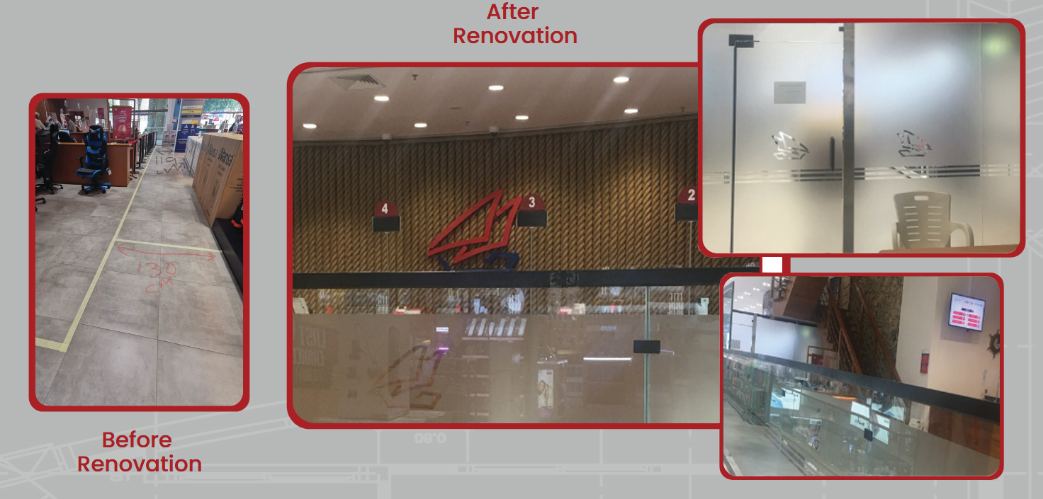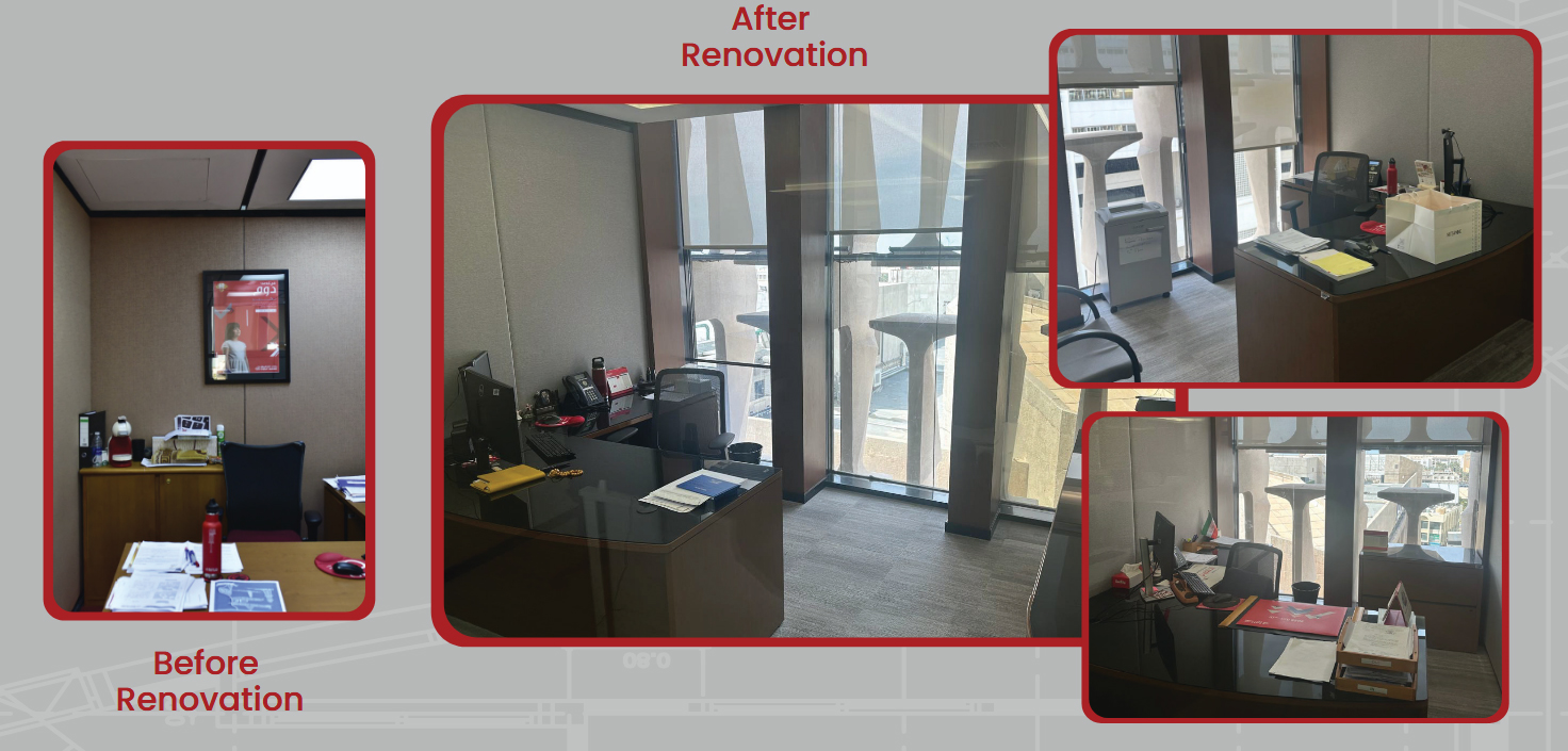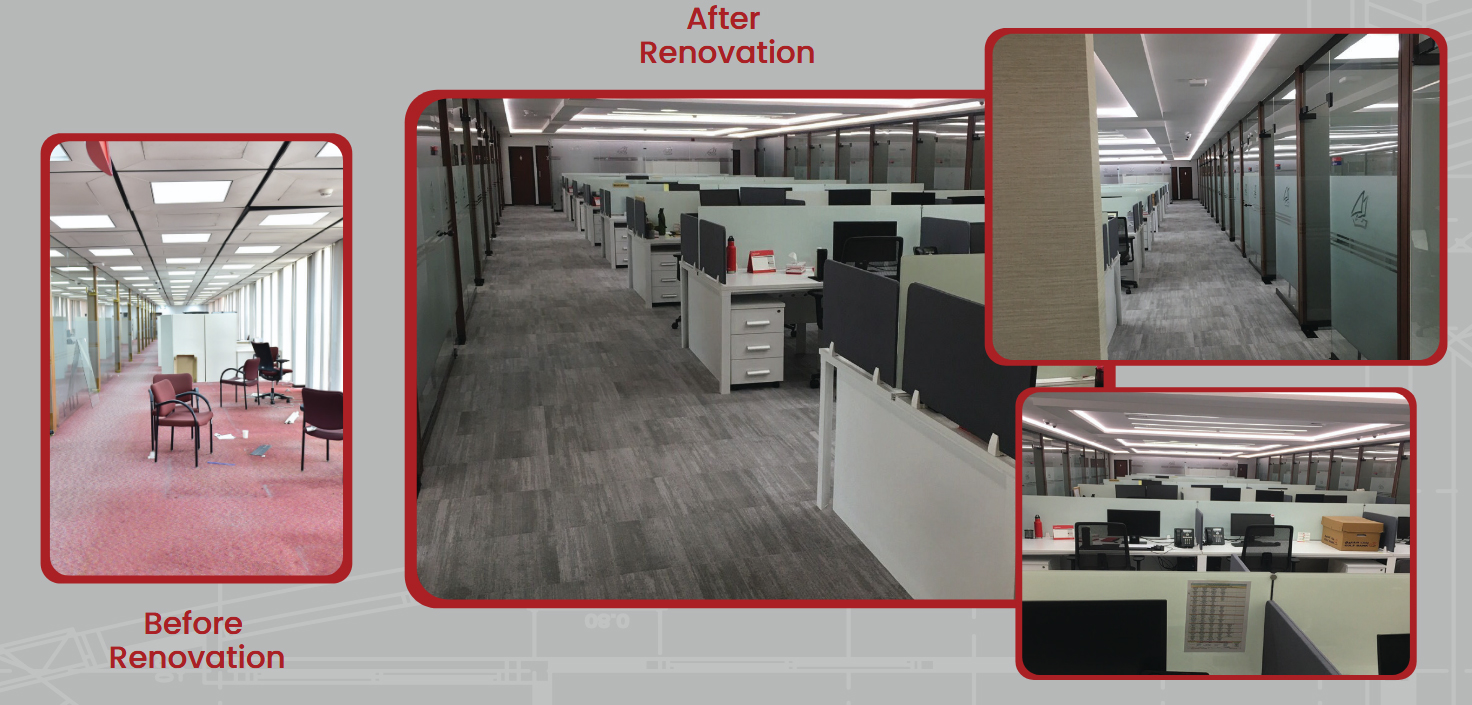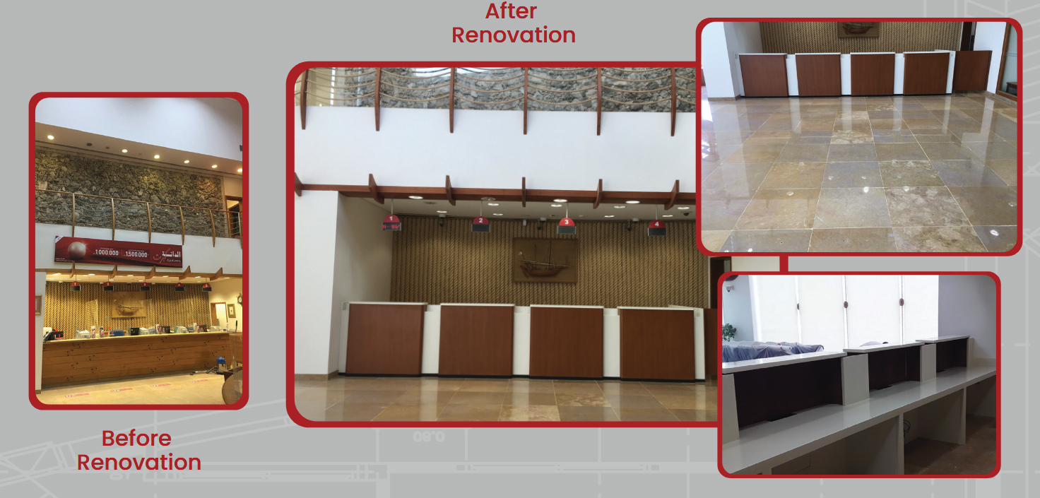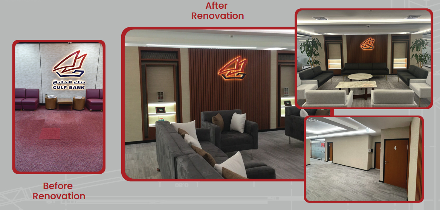 A modern workspace that combines aesthetics and functionality. Staff Workstations Restrooms Customer Service Counter Separate Offices Glass Partition – Fahaheel Branch The Bank's Conference Room After Renovation The Staff Cafeteria After Renovation The Dealing Room After Implementation Open 24/7 support for help Call For Support . We are Ready To Help You. CONTACT US